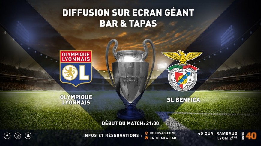 Mardi 5 novembre dès 19h00 le DOCKS 40 vous accueille pour supporter l'OL lors de sa rencontre avec le SL Benfica !
