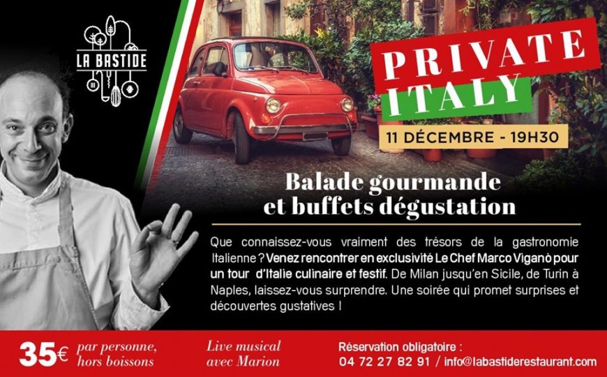 Rendez-vous à la Bastide le 11 décembre prochain à partir de 19h30 pour une soirée Italienne exceptionnelle avec le chef Marco Vigano !