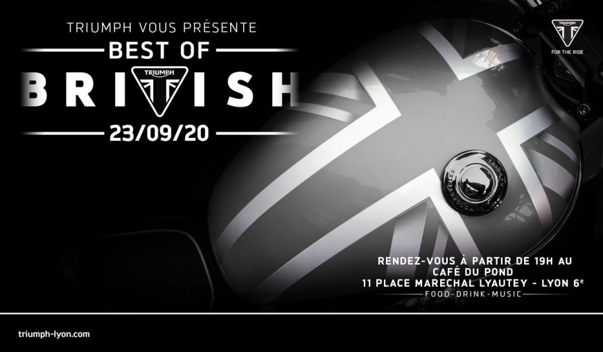 Rendez-vous au Café du Pond pour une Soiree Best of British afin d'échanger de manière conviviale autour de belles motos anglaises sur la place Maréchal Lyautey. Infos Pratiques : Mercredi 23 septembre 19h00 11 place du Maréchal Lyautey, 69006 Lyon