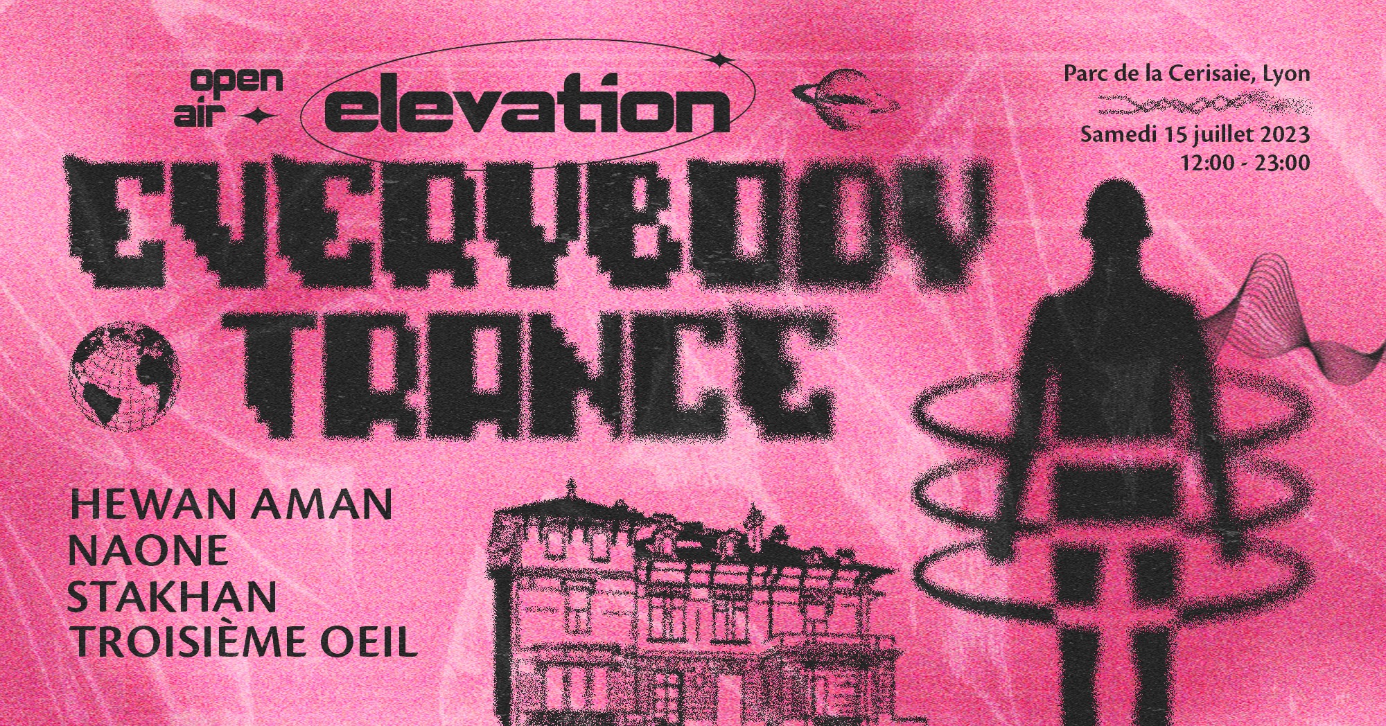 Après 2 éditions le 3 juin et le 1er juillet, et avec une programmation digne d'un grand festival, le collectif Everybody Trance revient le samedi 15 juillet à Lyon pour un open air au parc de la Ceriseraie, au pied de la Villa Gillet.