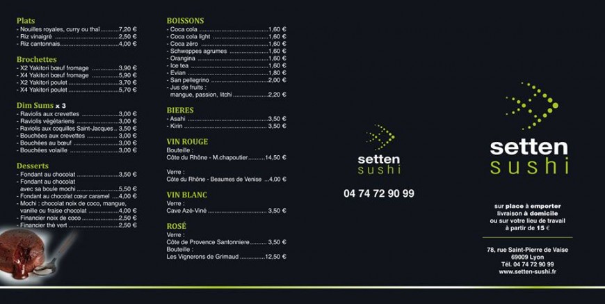 Sur place ou à emporter, Setten sushi vous offre aussi un service de livraison sur votre lieu de travail ou à domicile le midi ainsi que le soir à partir de 15 euros.