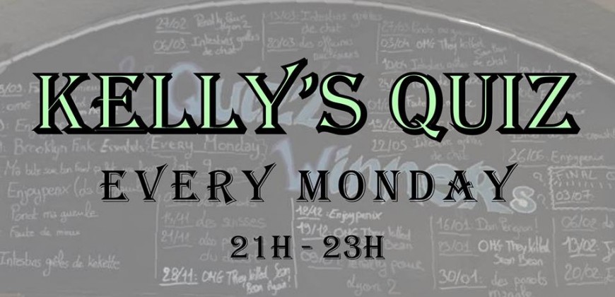 Kelly's Quiz tous les Lundis soirs, le premier de la série sera le Lundi 7 Janvier. Au programme, pinte, burger, questions de culture générale et lots à gagner !