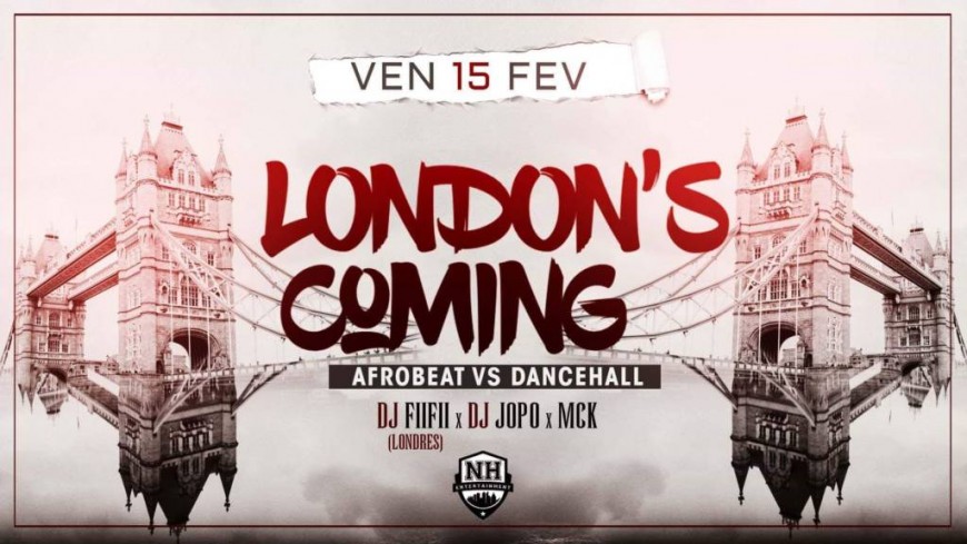 Nouvelle soirée du NH Entertainement, London is coming. Le Vendredi 15 Février, profitez des meilleurs sons Afrobeat du moment avec DJ FiiFii venu tout droit de la capitale Anglaise. À ses côtés tout au long de la soirée DJ Jopo, le roi de la Dancehall.