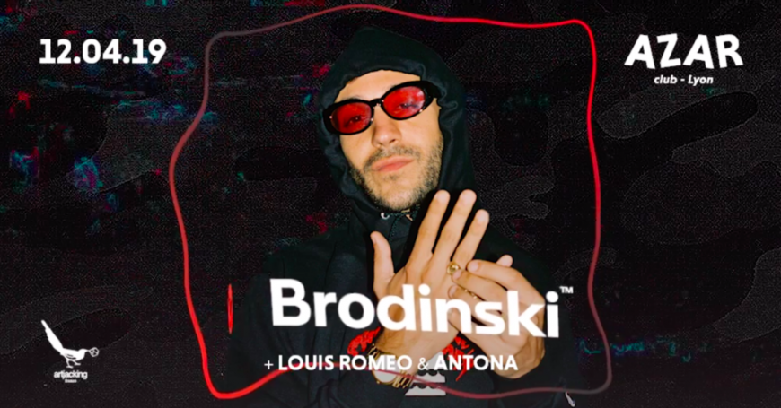 Le Vendredi 12 avril Azar Club reçoit le DJ et producteur Brodinski. Figure de la scène électronique parisienne, il se lance très vite sa carrière à l'internationale notamment en Amérique, en Asie et en Australie. Mais cette fois c'est à Lyon qu'il s'arrête pour une soirée exceptionnelle.