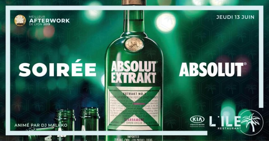 La SOIRÉE ABSOLUT se déroulera le Jeudi 13 juin à partir de 19h à l’Ile Restaurant Animée par DJ MALKKO